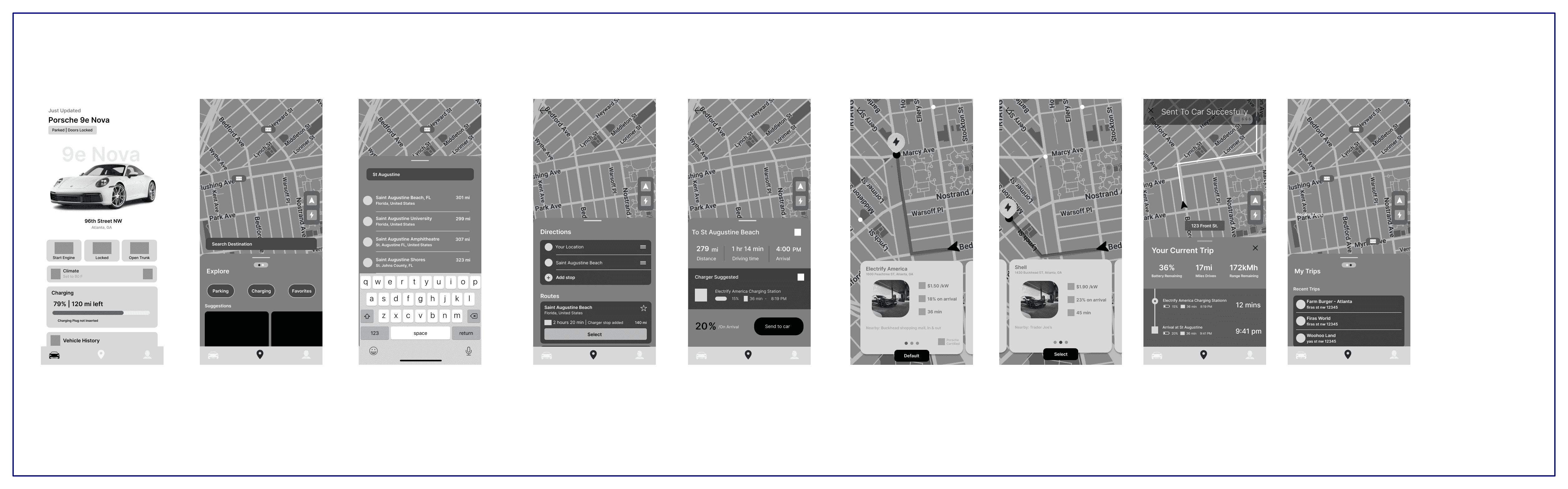 I redesigned the end-to-end My Porsche trip-planning flow, focusing on pre-departure planning as a high-impact but fragmented experience. From low-fidelity sketches to Figma wireframes, I created a single, continuous flow that lets drivers plan, send, and track trips without navigating complex menus, guided by driver-first clarity, personalized performance, and ecosystem consistency.